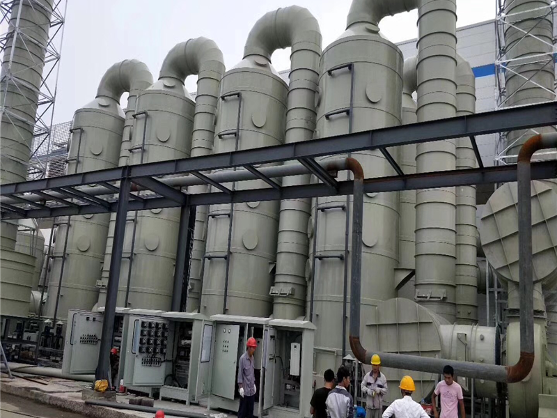 由于上升的氣流和下降的水在填料層中不斷接觸,所以上升氣流中顆粒及溶于水的組分的濃度越來越低,塔體的最上部是除霧段,氣體中所夾帶的吸收液霧在這里被清除下來,經(jīng)過初步處理后的氣體從吸收塔上端排氣管進入下一級處理設(shè)備。經(jīng)過洗滌塔處理過的廢氣,能有效吸收氣體中的顆粒。